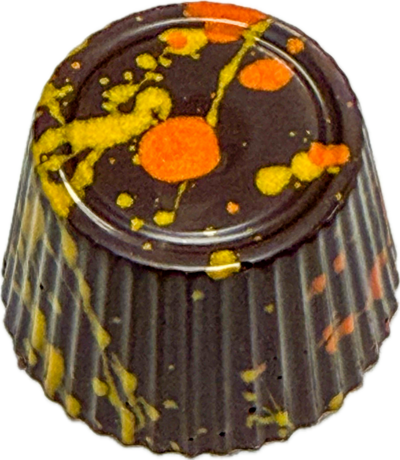 Local Peach Jelly layered with a white chocolate vanilla & orange scented ganache contains: dairy